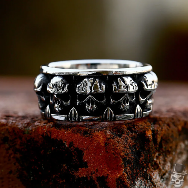 Discover the bold and edgy design of the Men’s Stainless Steel Skull Ring by Sculpt Rings™. Crafted from high-quality stainless steel, this ring features an intricate pattern of skulls and crossbones, making it a perfect accessory for gothic, biker, and punk styles.